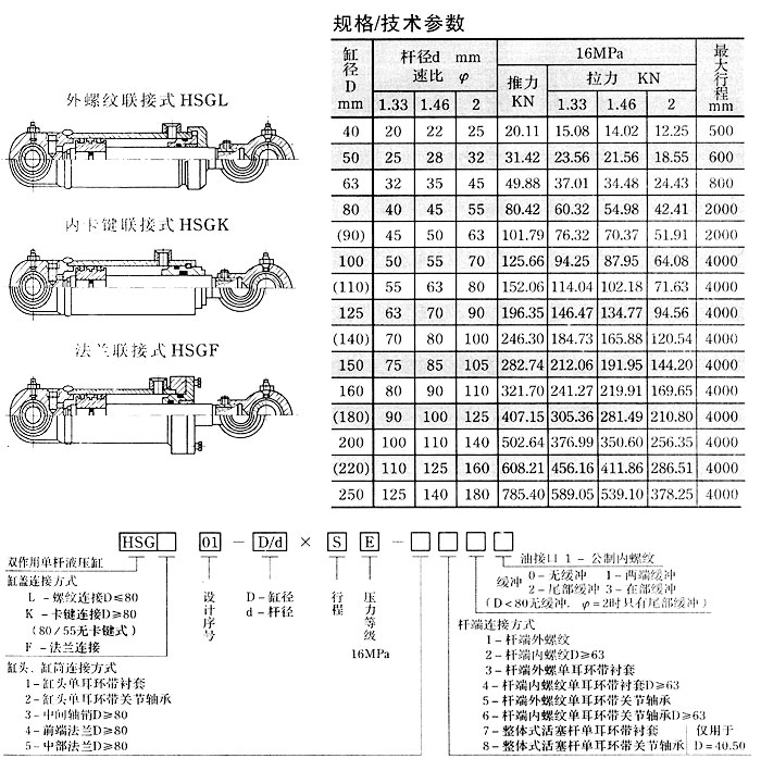 本系列液压缸具有结构简单、工作可靠、拆装方便、易于维修、可带缓冲装置及安装型式多样等特点。适用于工程机械、起重、运输机械及矿山机械的液压传动。工作压力16MPa、缸径40-250mm。